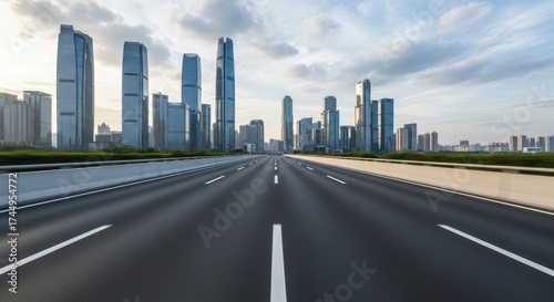 Fototapeta premium Open Highway Leading to a Modern City Skyline