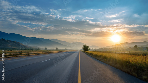 Fototapeta premium Open Highway Leading Toward Sunrise in Mountain Landscape