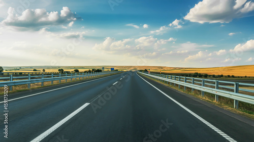 Fototapeta premium Open highway stretching towards horizon under blue sky