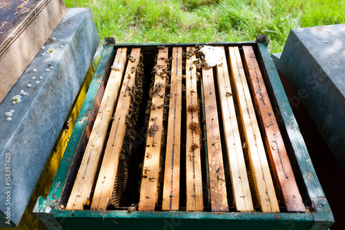 © elleonzebon, Fototapeta premium Open hive, beekeeping