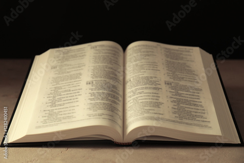 Fototapeta premium Open Holy Bible in English language on beige table