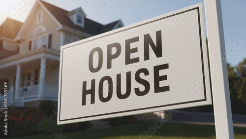 © Anastasiia, Obraz premium Open house sign with country house in background
