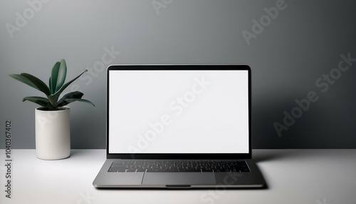 Fototapeta premium Open laptop with blank screen on a minimalist background, ideal for branding...