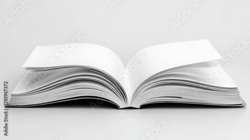 © Rauf, Fototapeta premium Open magazine with rolled white pages, transparent background.
