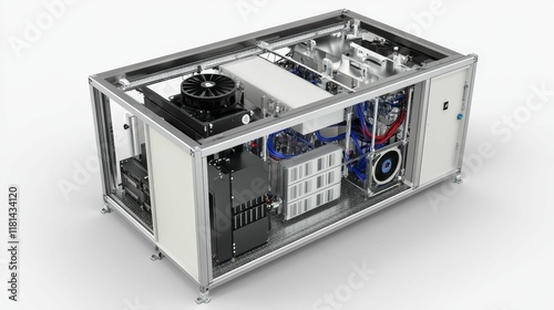 © jambulart, Obraz premium Open metal frame enclosure with internal components.