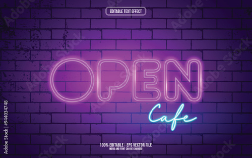 © hellomuh22, Obraz premium Open neon style 3D editable text effect