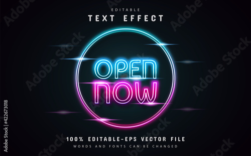 © Aglonemadesign, Obraz premium Open now, neon style text effect