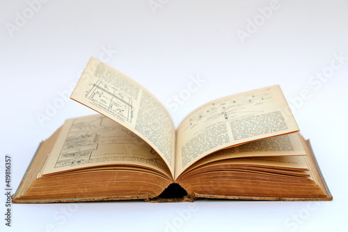 © Apichart, Fototapeta premium Open old book with text on white background