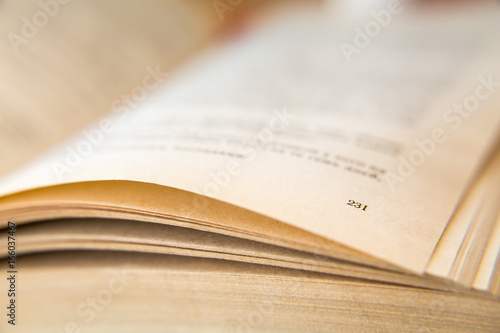 © Andrey Lapshin, Fototapeta premium Open old book. Yellowed pages. Page number 231. Paper texture. Macro.