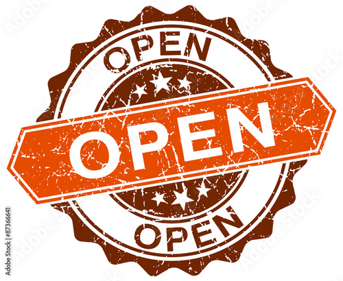 Obraz premium open orange round grunge stamp on white