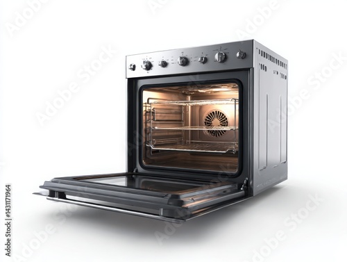 © Rajibmro, Fototapeta premium Open oven with fan and racks isolated on white background