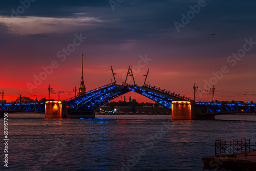 Obraz premium Open Palace Bridge in St. Petersburg on a white night.
