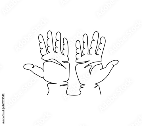 © sahs94, Obraz premium Open palms gesture one line art. Continuous line drawing of gesture, hand, open palms, hands up.