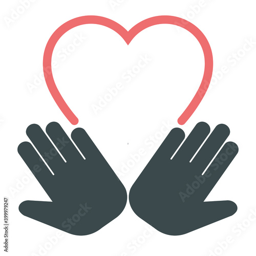 © Евгений Потапов, Obraz premium Open palms with hearts. Flat illustration.