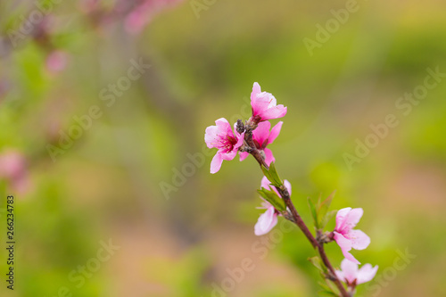 Fototapeta premium Open peach blossoms in spring, outdoors