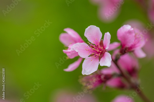 Fototapeta premium Open peach blossoms in spring, outdoors