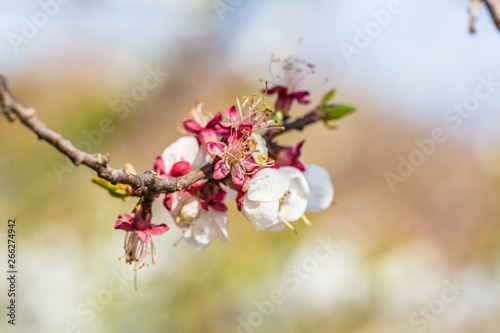 Fototapeta premium Open peach blossoms in spring, outdoors