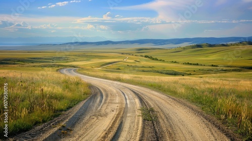 © Mykola, Fototapeta premium Open Range. Gravel Road Intersection in Beautiful Grassland Countryside