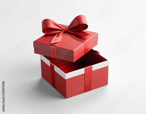 © Liang, Fototapeta premium Open Red Gift Box with Ribbon
