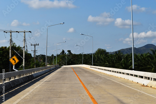 © anant_kaset, Fototapeta premium Open road on the bridge with mountain and blue sky in background, Southeast Asia, Thailand