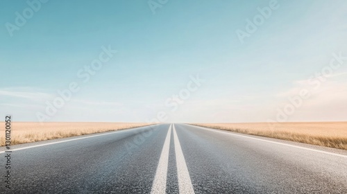 Fototapeta premium open road stretching under clear blue sky bordered by vast fields perfect for conveying freedom and exploration with