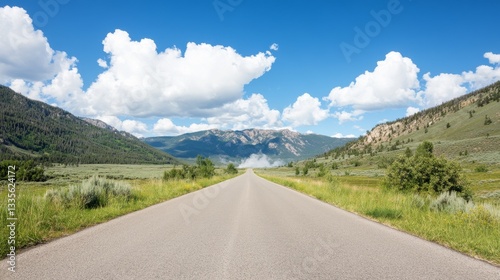 © logitech, Naklejka premium Open road through a valley under a vast sky