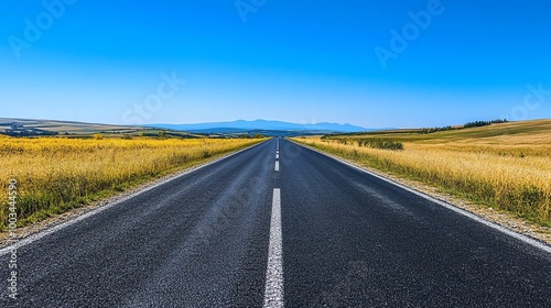 © santima, Naklejka premium Open road through yellow fields under blue sky