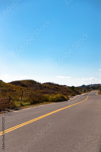 Naklejka premium Open road view of Old Montauk Highway in the fall