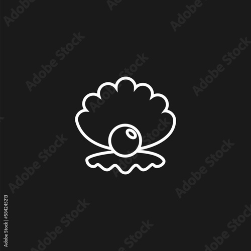 Fototapeta premium Open shell silhouette with pearl, icon isolated on black background