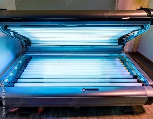 © Joey, Obraz premium open solarium bed emitting ultraviolet light for tanning offering beauty and relaxation