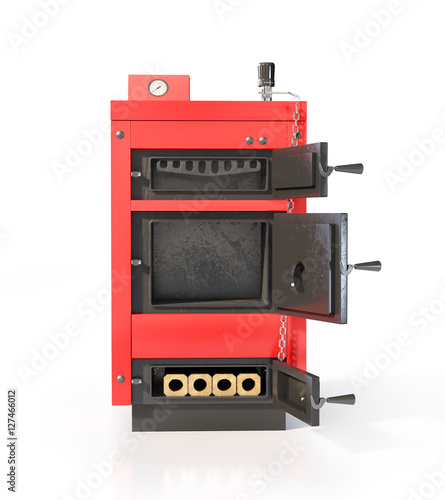 © vipman4, Fototapeta premium Open solid fuel boiler. Isolated on white background. 3d illustr