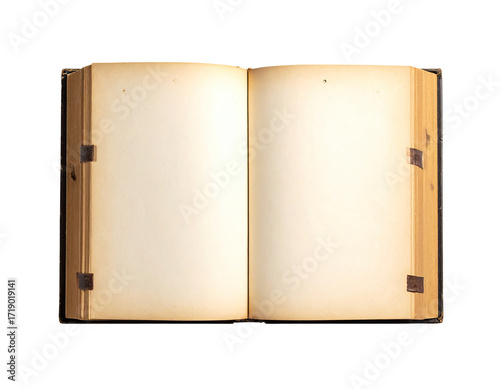 © Tot, Fototapeta premium Open vintage book, pages blank, aged look