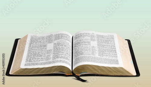 Obraz premium Open vintage christian bible on the desk
