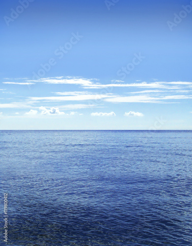 © eivaisla, Fototapeta premium Open water with copy space. Sea scene and fluffy clouds.