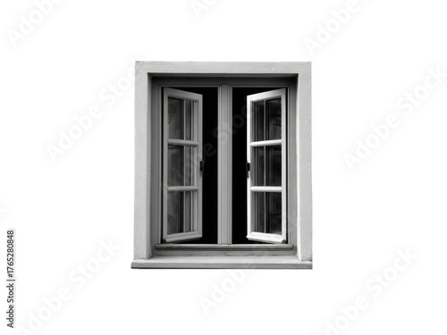 Fototapeta premium Open window on black background, monochrome photography, architectural detail, Isolated On White Background, Png Transparent