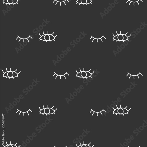 © babushka_p90, Fototapeta premium Opened and closed human eyes with eyelashes on black background. Seamless pattern background winking eyes.