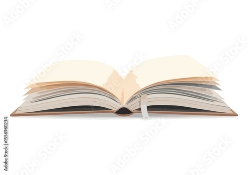Obraz premium Opened book with blank pages and ribbon bookmark, minimalistic design in soft...