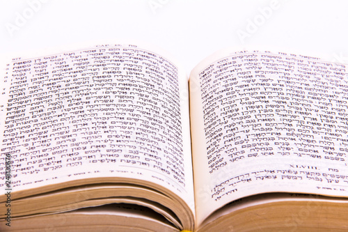 © MiniMoon Photo, Obraz premium Opened hebrew Bible, isolated on white background