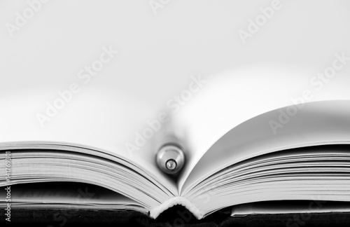 © diyanadimitrova, Obraz premium Opened notebook with pen isolated - selective focus, copy space