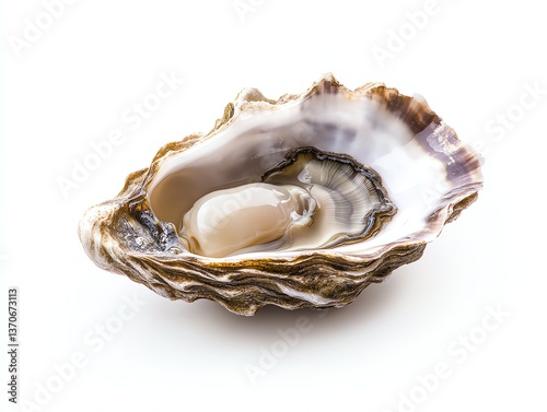 Naklejka premium Opened Oyster with Pearl on White Background for Seafood Concepts