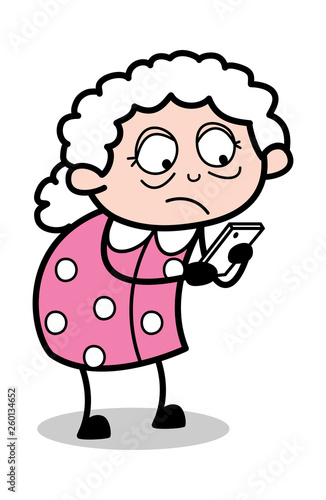 Fototapeta premium Operating Smartphone - Old Cartoon Granny Vector Illustration