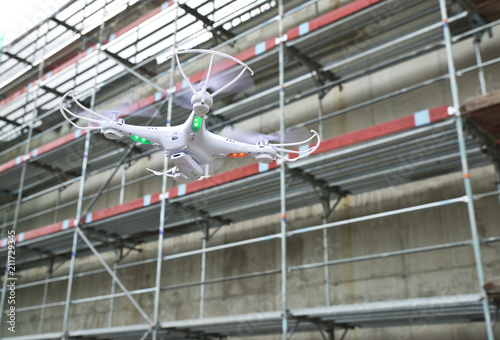 © eddystocker, Fototapeta premium operator of the drone engineer at the construction site manages the flight and makes a video