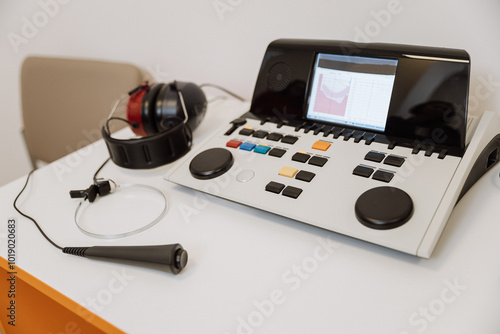 Fototapeta premium Operator working on medical diagnostic equipment, ideal for healthcare,...