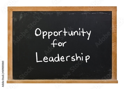 Fototapeta premium Opportunity for leadership written in white chalk on a black chalkboard in a...
