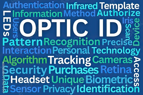 © Robert Wilson, Obraz premium Optic ID Word Cloud on Blue Background