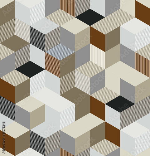 © Sylverarts, Obraz premium Optical cubes seamless pattern, technology style vector backdrop