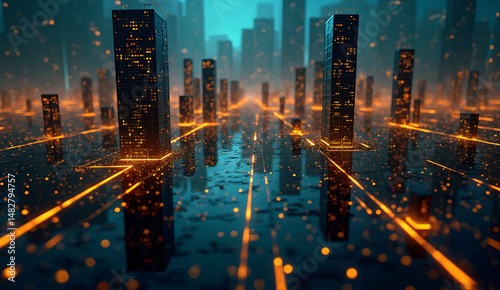 © 陈佳乐, Naklejka premium Optical Rail Network in Future Cities