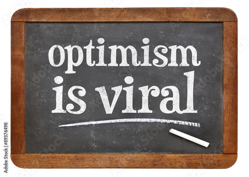 Fototapeta premium optimism is viral - text on blackboard