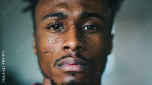 © Wagner, Fototapeta premium Optimistic Black Male With Scars Face
