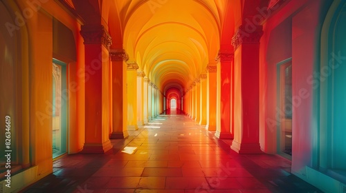 Fototapeta premium Opulent Architectural Passage Radiating Vibrant Chromatic Hues and Dramatic...